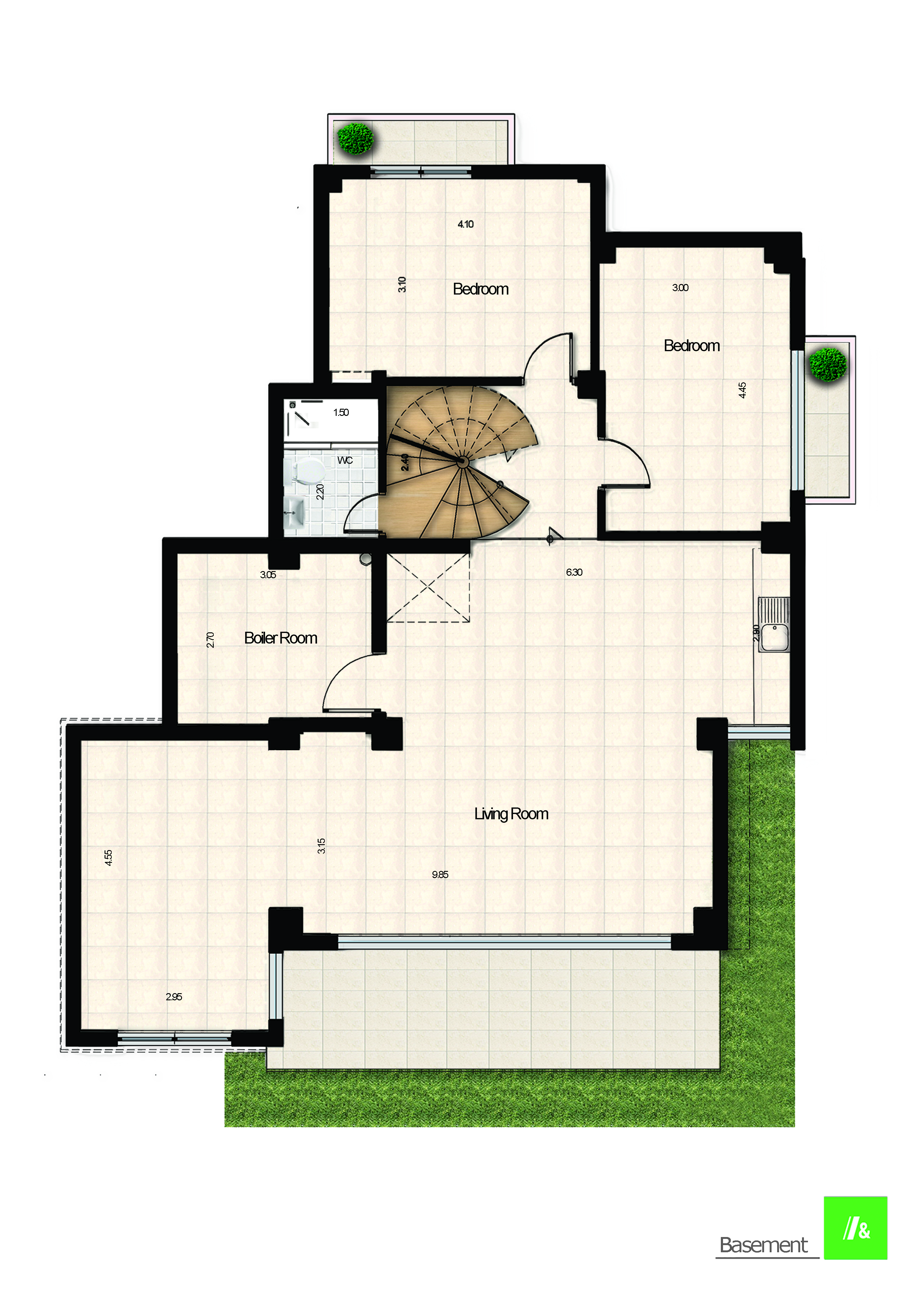 - The basement of 112 m² provides spaces suitable for suitable for guestrooms, extra storage, laundry, playroom and living room. This open space opens to a veranda and the garden.