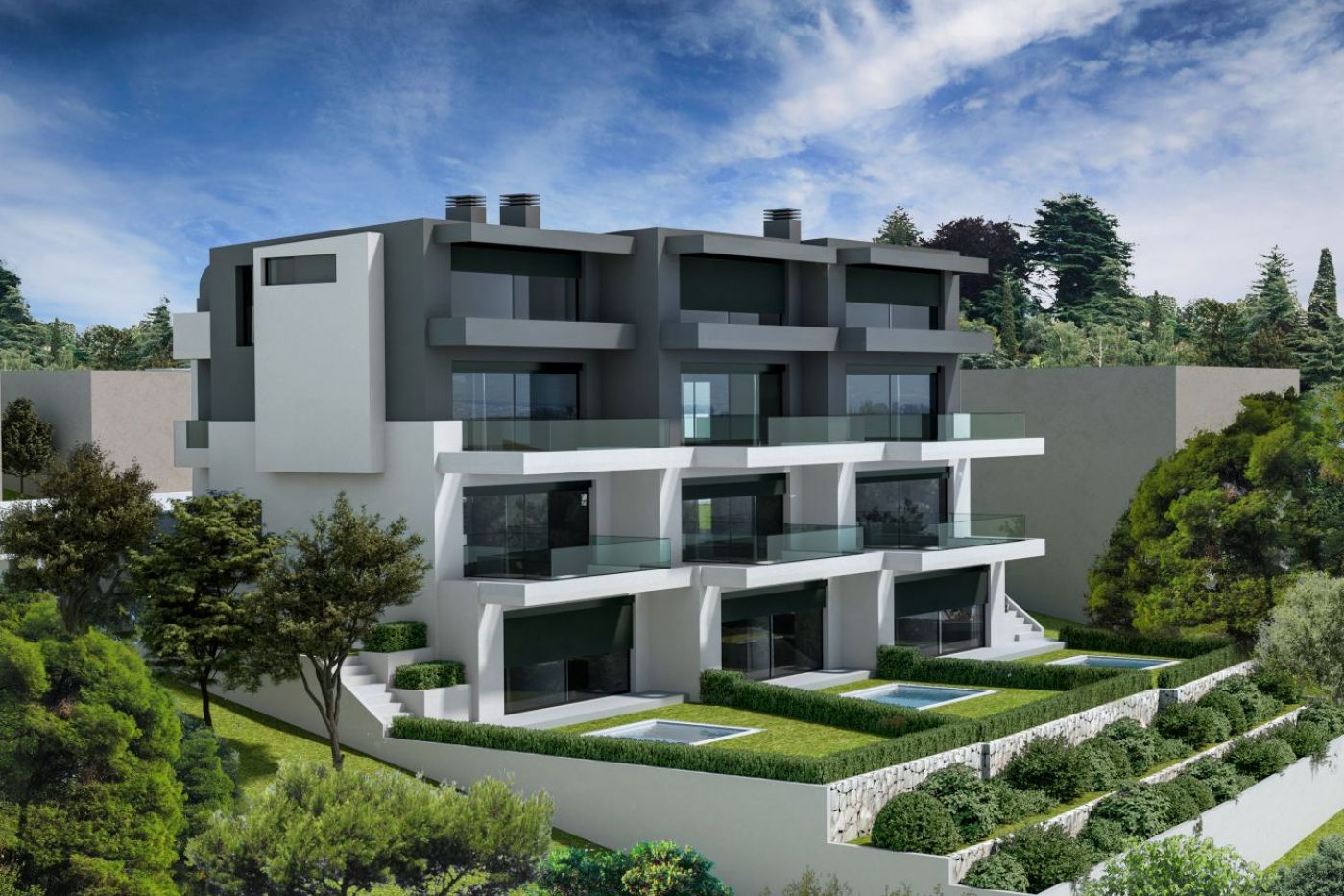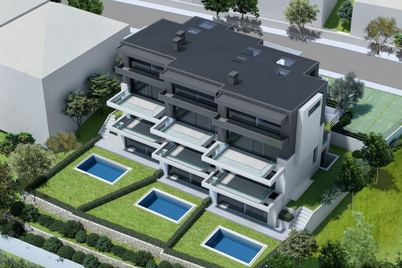 The project is located at Nomos 751 in Panorama, an area easily accessible by car and public transport from and to the main road of Thessaloniki-Panorama. It is also located next to the settlement of Panorama which has a shopping center and full services. It is an area with lots of greenery, open spaces, parks, views of the city and the sea. The residential building is located on a green, sloping plot, overlooking the city of Thessaloniki and the sea of Thermaic Gulf.