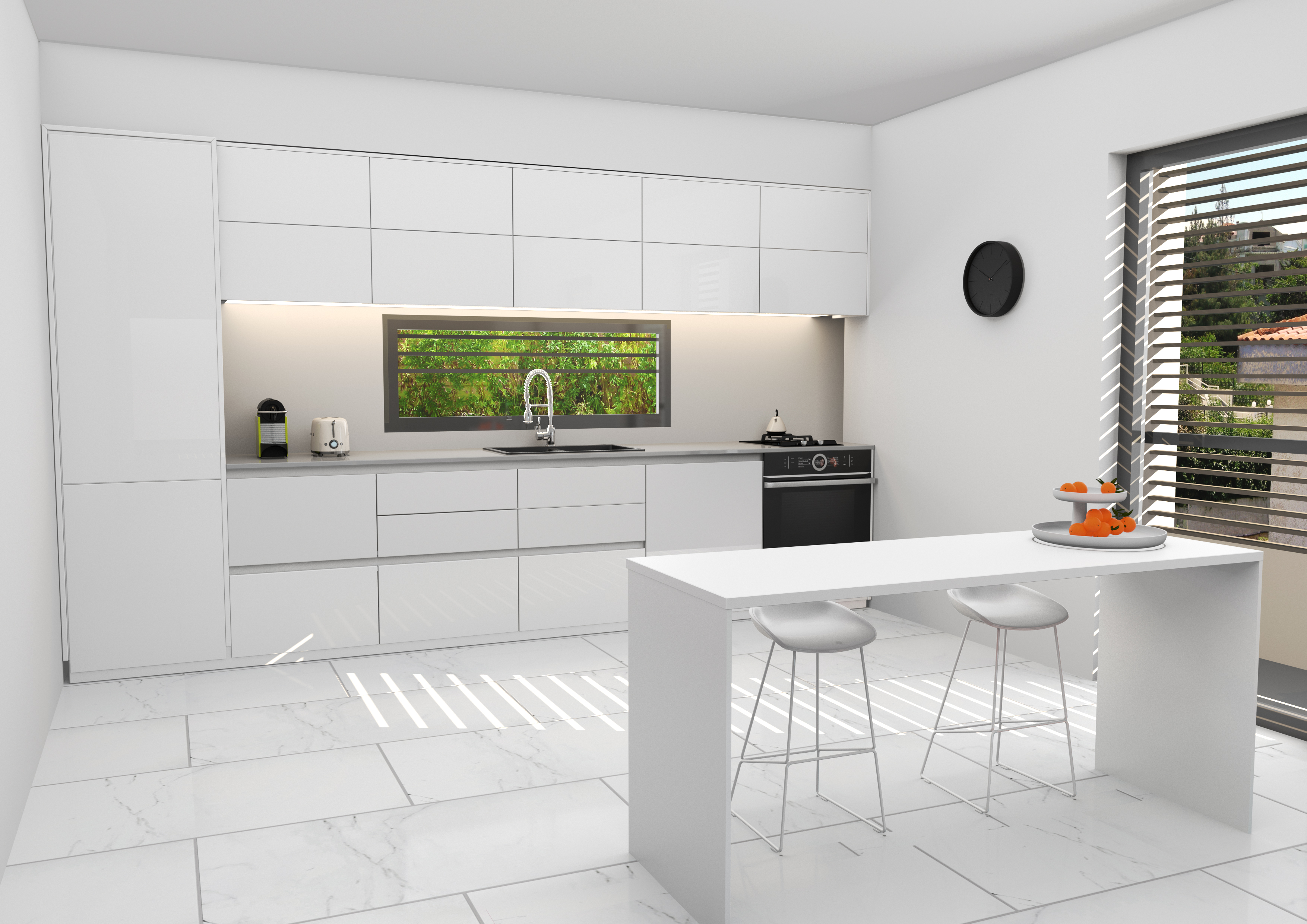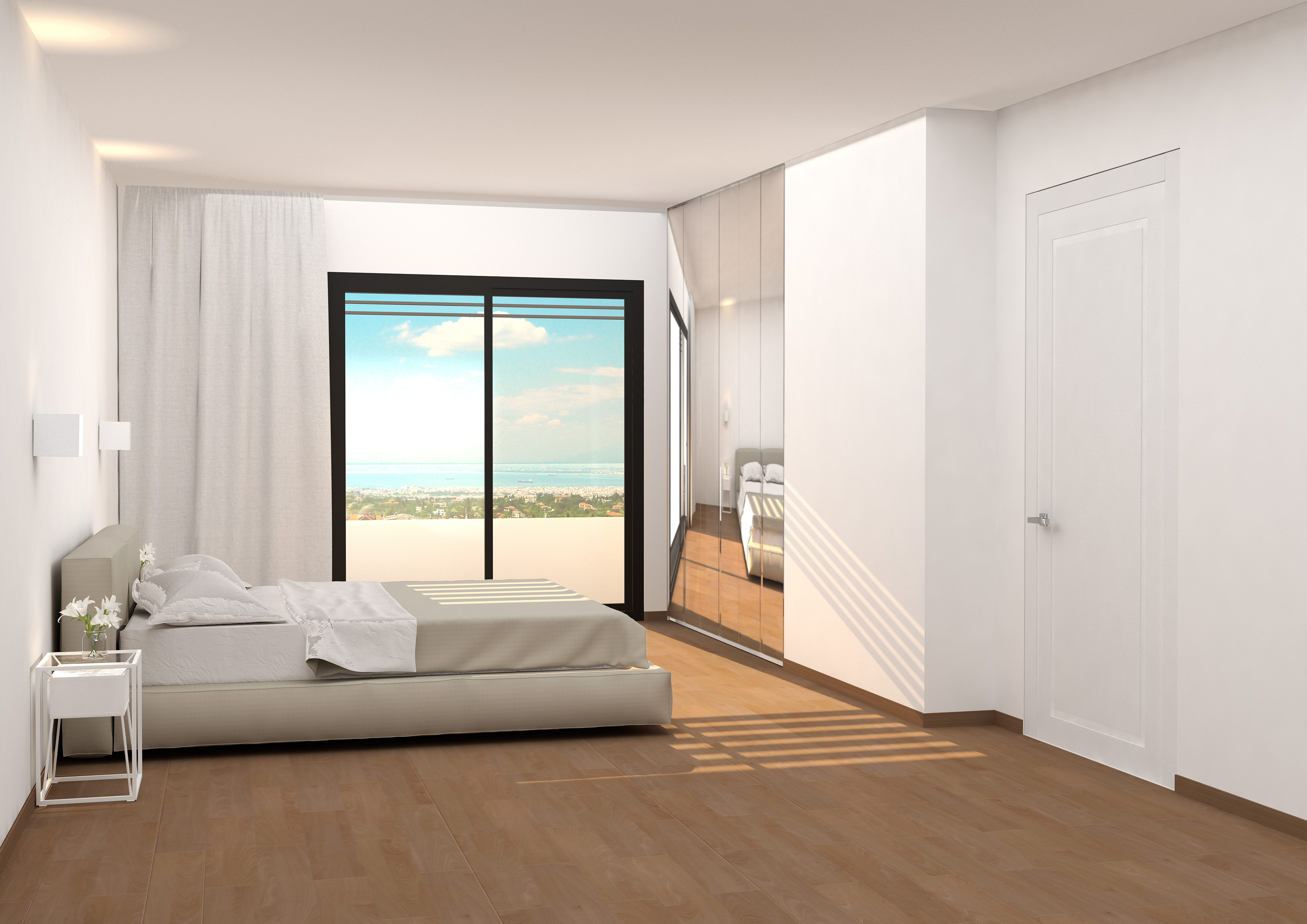 The residential building is located in a green area on a south-west facing slope with views to the city of Thessaloniki and the Thermaic Gulf.