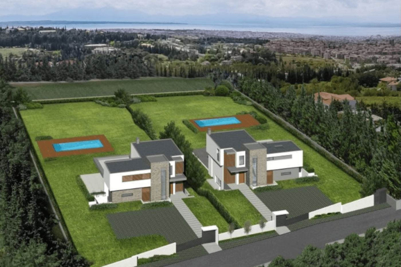 On land with views to the sea and the city of Thessaloniki, with natural differences in elevation, the two houses were designed in a way that provides a sense of privacy and unobstructed panoramic view.The energy design aimed primarily at economic efficiency and high performance. Sunspaces are used to minimize heat loss, heat pumps are installed for cooling and heating. Energy-efficient fireplaces and energy-efficient windows with thermal barrier are also part of the energy design.